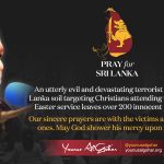 An utterly evil and devastating terrorist attack on Sri Lanka soil targeting Christians attending the auspicious Easter service leaves over 200 innocent people dead. Our sincere prayers are with the victims and the grieved ones. May God shower his mercy upon them, amen.